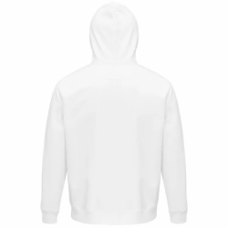 Durable combination of ring-spun cotton and polyester. Unisex hoodie with scraped interior, jersey lined hood and elastic ribbed hem at the waist and at the end of the sleeves. Lanyards with eyelets and metal stoppers. Composed of 80% cotton from organic farming and 20% recycled polyester. Washable at 30 degrees.